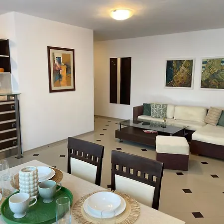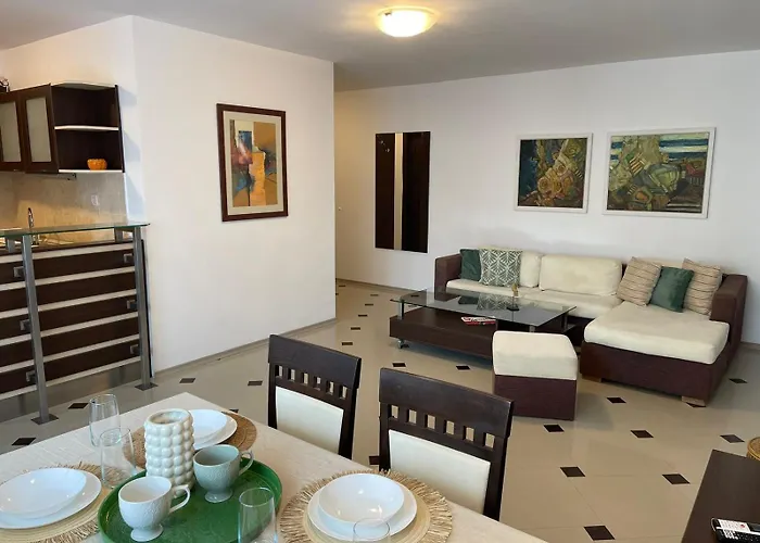 A Burgasz nemzetkozi repülőtér 16 perces autóútra, a Ruski Pametnik buszmegálló pedig 10 perc sétára található az Делукс Апартамент Лазур Поморие.
